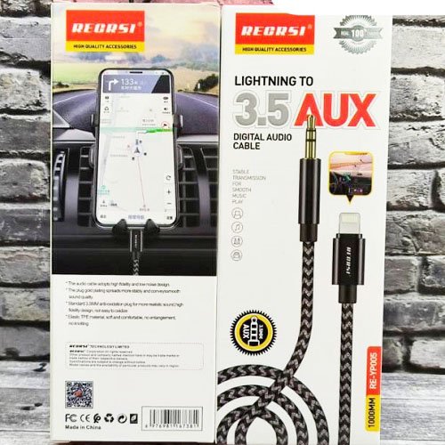 - Кабель AUX-Lightning RECRSI YP-005 текстильный 1м (Чёрный)