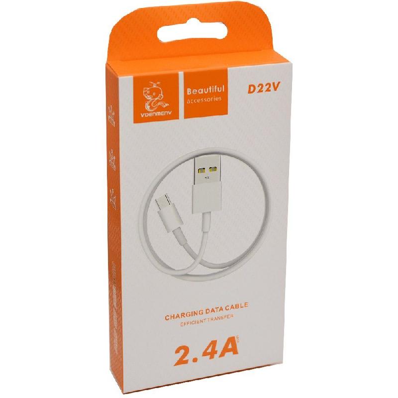 Кабель Micro vdenmenv D22V 2.4A резиновый 1м (Белый)