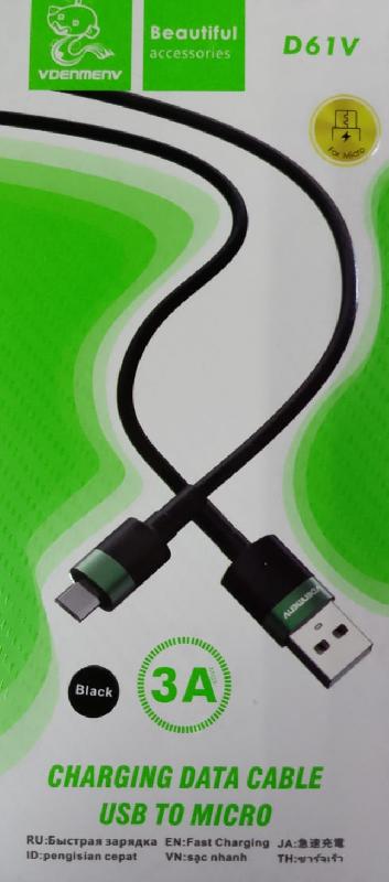 - Кабель Micro vdenmenv D61V 3A текстильный 1м (Чёрный)