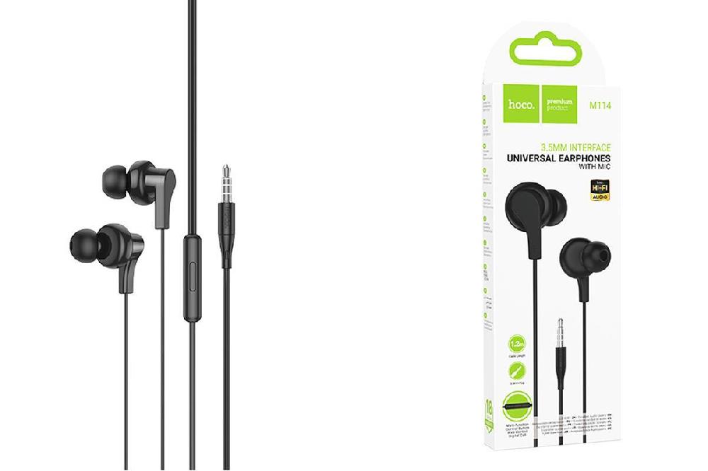 Наушники НОСО М114 вакуумные с микрофоном, 1,2м (Чёрный)