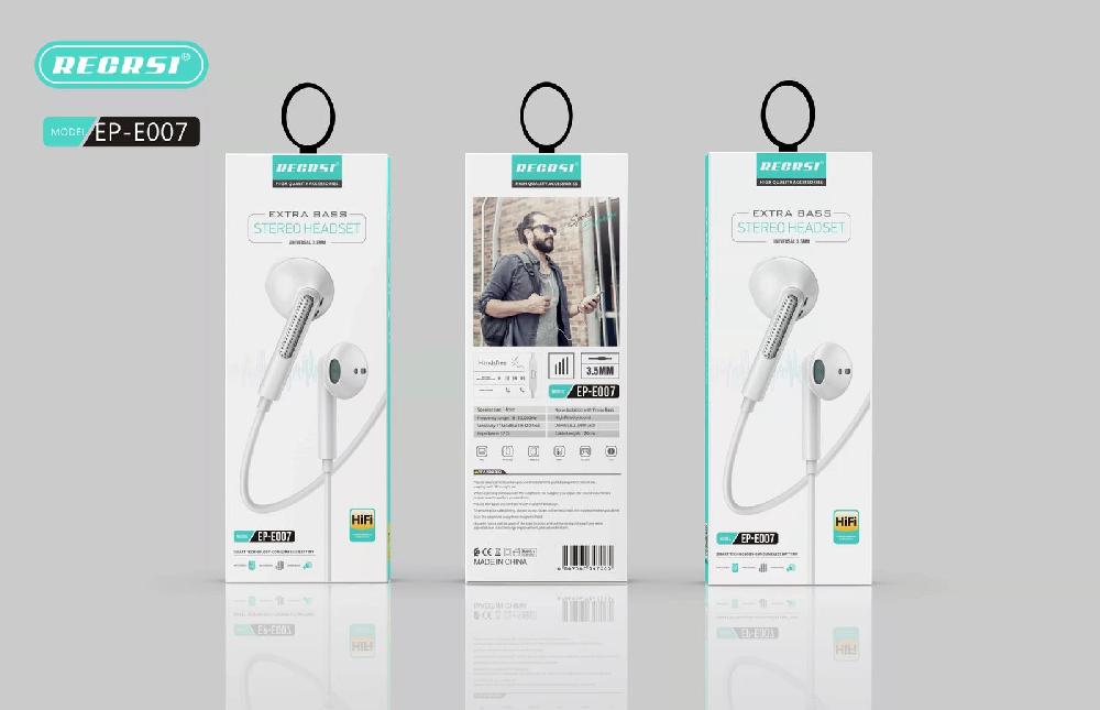 - Наушники проводные внутриканальные RECRSI EP-E007 с микрофоном (Белый)