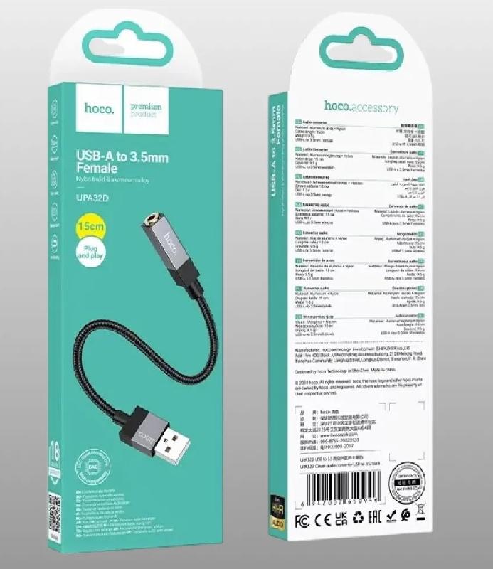- Переходник HOCO UPA32D USB - AUX (Чёрный)